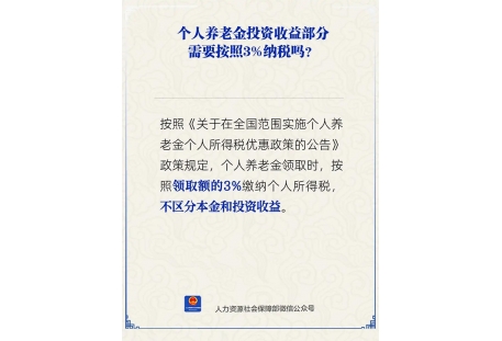 按照《關(guān)于在全國(guó)范圍實(shí)施個(gè)人養(yǎng)老金個(gè)人所得稅優(yōu)惠政策的公告》政策規(guī)定,個(gè)人養(yǎng)老金領(lǐng)取時(shí),按照領(lǐng)取額的3%繳納個(gè)人所得稅,不區(qū)分本金和投資收益。